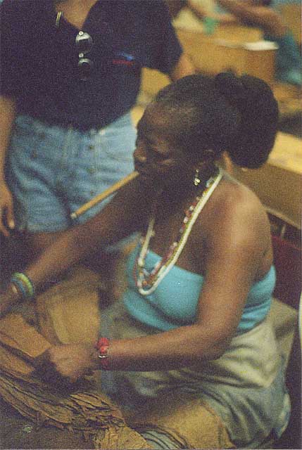 Cigar "tester" at a factory in the hilly country-side of Pindar Del Rio, Western Cuba.