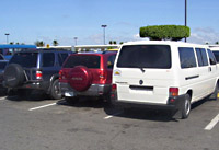 This is the same way you change lanes on the boulevard. Don’t bother signaling. That might alert the other driver to your intentions, causing him to alter his course to get there first. If your front quarter is ahead of the vehicle in the other lane, make your move. You are ahead; you have the right-of-way! And once you have this right established, you have the right to slow down, straddle the dividing line, or even stop to pick up a friend. Knowing this, many drivers do straddle the dividing lines, thereby taking up two lanes, so they can switch lanes at a seconds notice. Thus, a three-lane boulevard effectively becomes a two lanes, thereby compounding the traffic congestion.