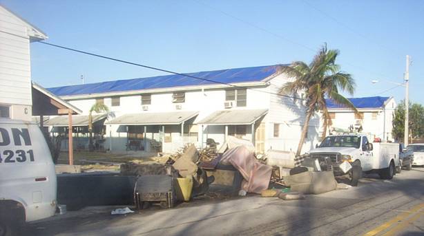Photo Five: Water-soaked furniture from one of the hundreds of homes in Key West piled in the street awaiting pickup. Note blue tarp covering blown-away roofs.
