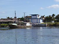 | Fishing boat in need of repairs, getting supplies on Rio Casa, Neuva Genora |