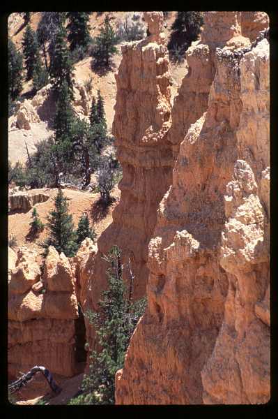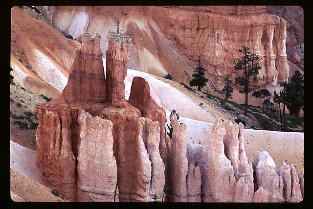 and hoodoos are caused by wind and water erosion of the softer sandstone