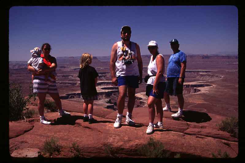 Here we are at the Grand Canyon. From left to right, we are Gordon, Stephanie, Dexter, Russ, Spencer and Whitney.